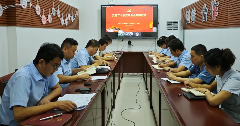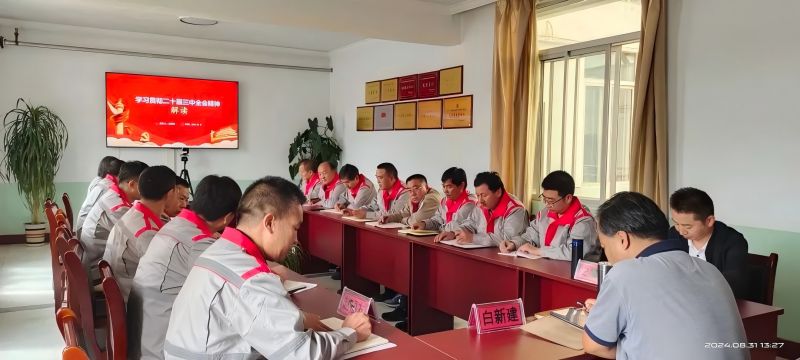 8月31日,williamhill官网党委书记、董事长、总经理白新建到内蒙五洲银兴公司宣讲党的二十届三中全会精神。五洲银兴党支部书记、董事长赵福友主持宣讲报告会。班子成员及党员干部20余人参会聆听。